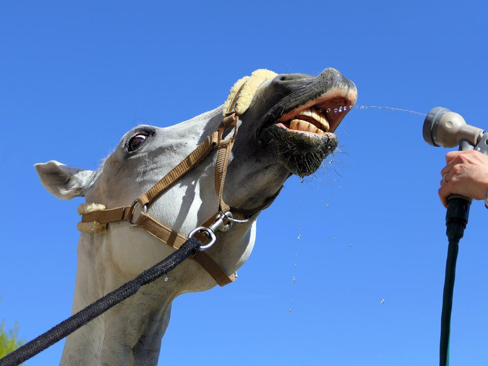 Kesähelteillä tulee huolehtia hevosen veden saannista